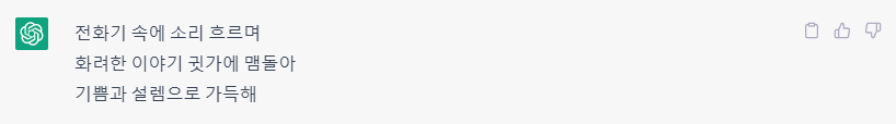 두번째로 '전화기'로 3행시를 작성시켜봤습니다.