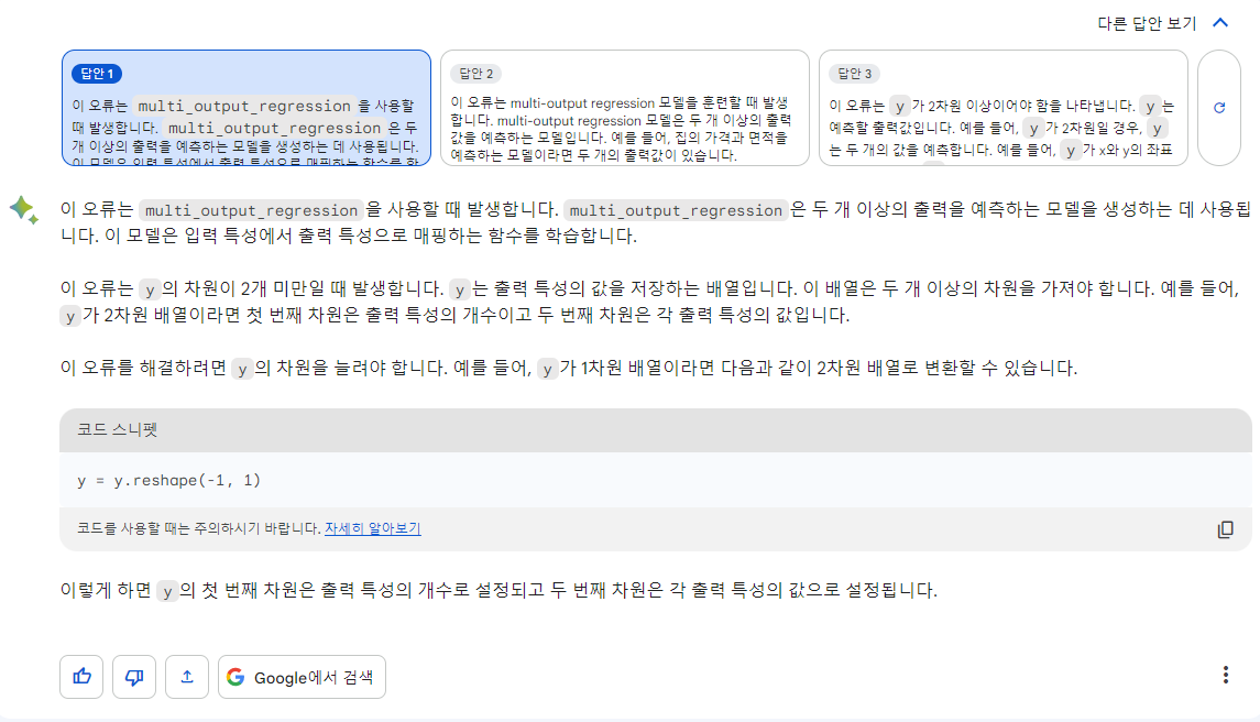 y must have at least two dimensions for multi-output regression but has only one. 오류